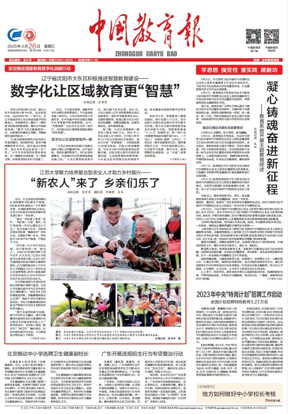 4月26日,《中国教育报》一版刊登文章《sunbet申搏官方网站聚力培养复合型农业人才助力乡村振兴——“新农人”来了 乡亲们乐了》,报道sunbet申搏培养强农兴农人才,赋能农业现代化的生动实践故事。