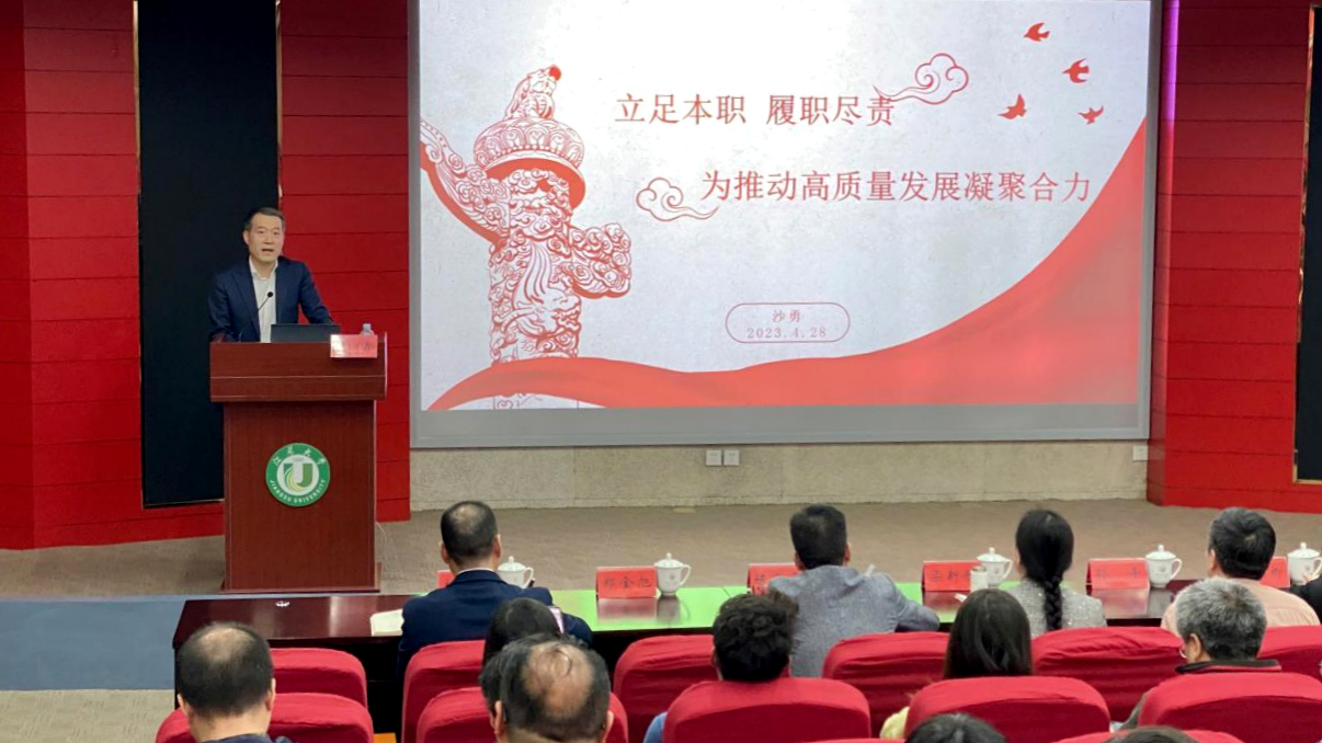 4月28日,sunbet申搏在图书馆报告厅举办以“立足本职 履职尽责 为推动高质量发展凝聚合力”为主题的统一战线专题报告会。