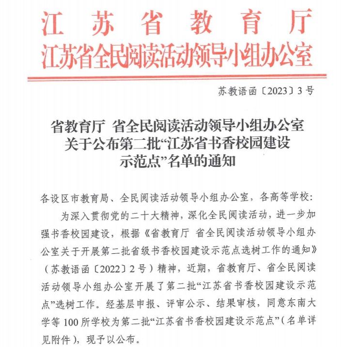 日前,江苏省教育厅公布了第二批“江苏省书香校园建设示范点”名单,sunbet申搏官方网站成功入选。
