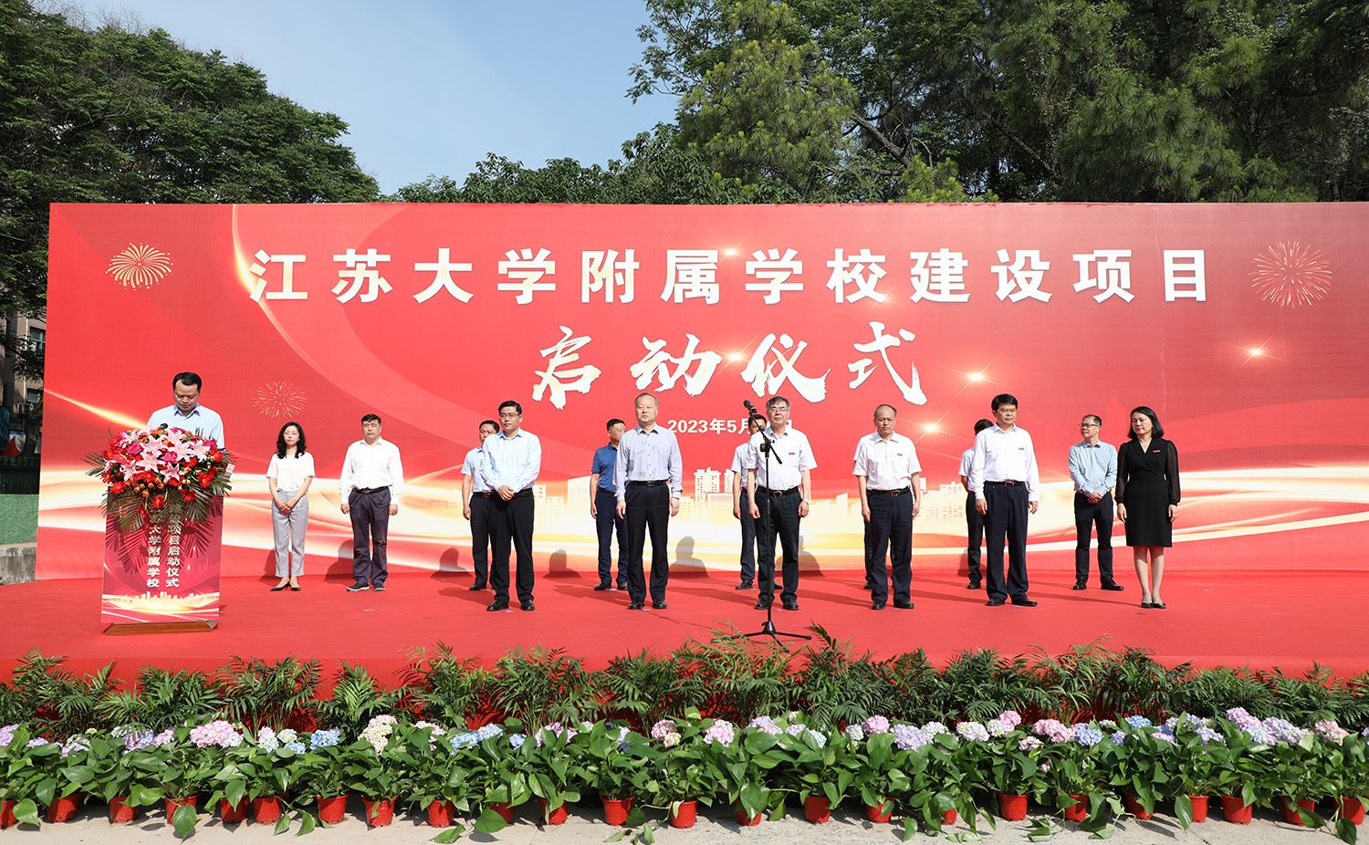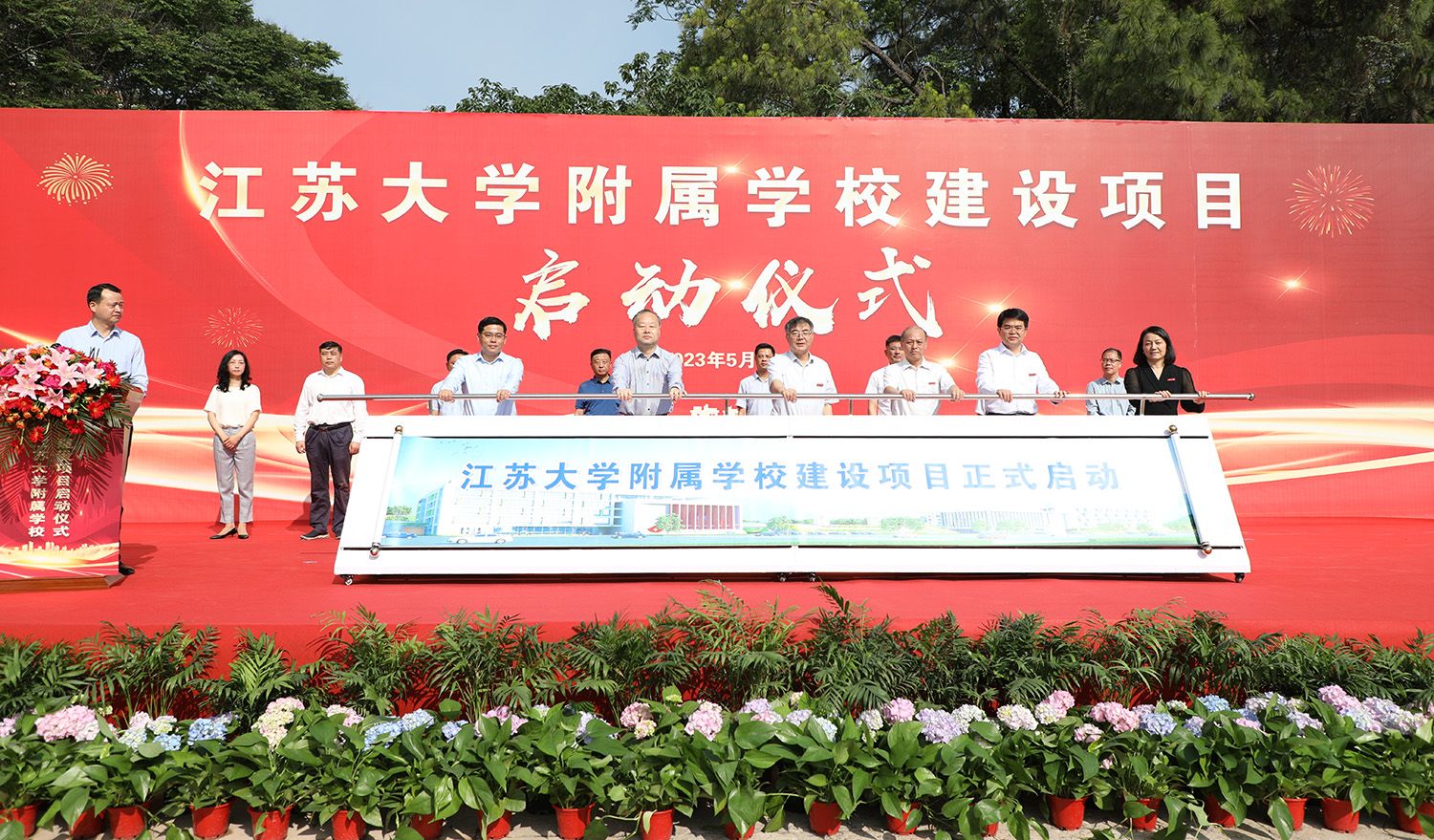 校党委书记袁寿其,校长颜晓红,校党委副书记李洪波,副校长陈红,镇江市政府党组成员黄万荣,镇江市京口区委书记贾敬远,镇江市京口区区长段永齐,sunbet申搏相关部门负责人及学院代表,镇江市委编办、发改委、教育局、财政局、自然资源和规划局、住建局、城管局、镇江城建集团相关分管领导,京口区政府分管副区长,相关区级部门与街道主要领导等参加启动仪式。