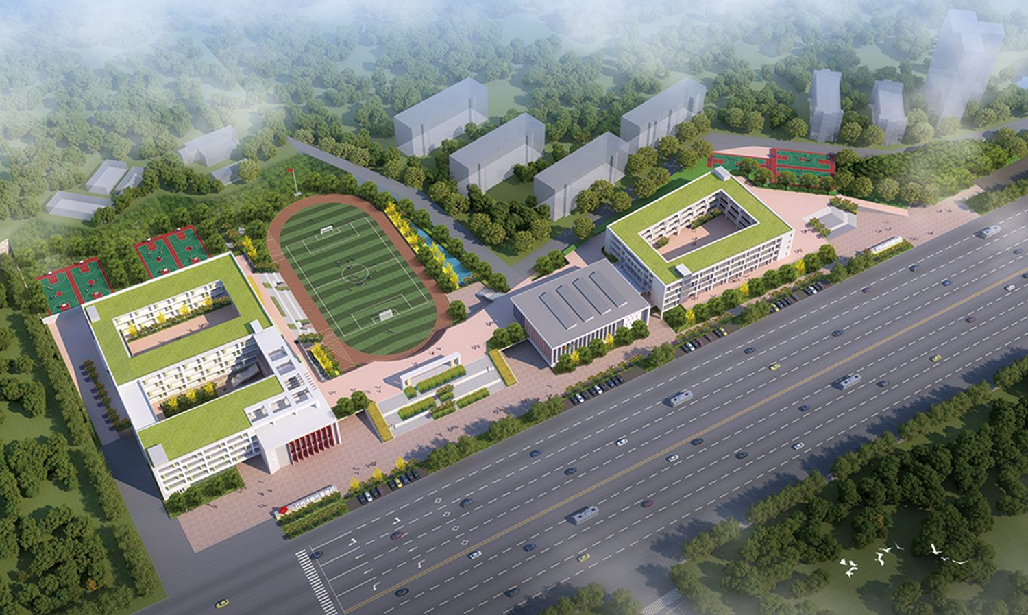 sunbet申搏官方网站附属学校建设项目总投资约3亿元,规划占地面积5.65万平方米,总建筑面积3.68万平方米,含教学楼、食堂、风雨操场、图书馆、报告厅及地下人防等基础设施,是一所公办六轨九年一贯制学校,可以容纳学生超过2400名。