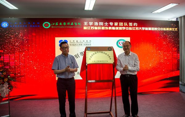 王学浩和校党委常委、副校长、附属医院党委书记张济建共同为江苏省肝胆外科临床医学中心sunbet申搏官方网站附属医院分中心揭牌。