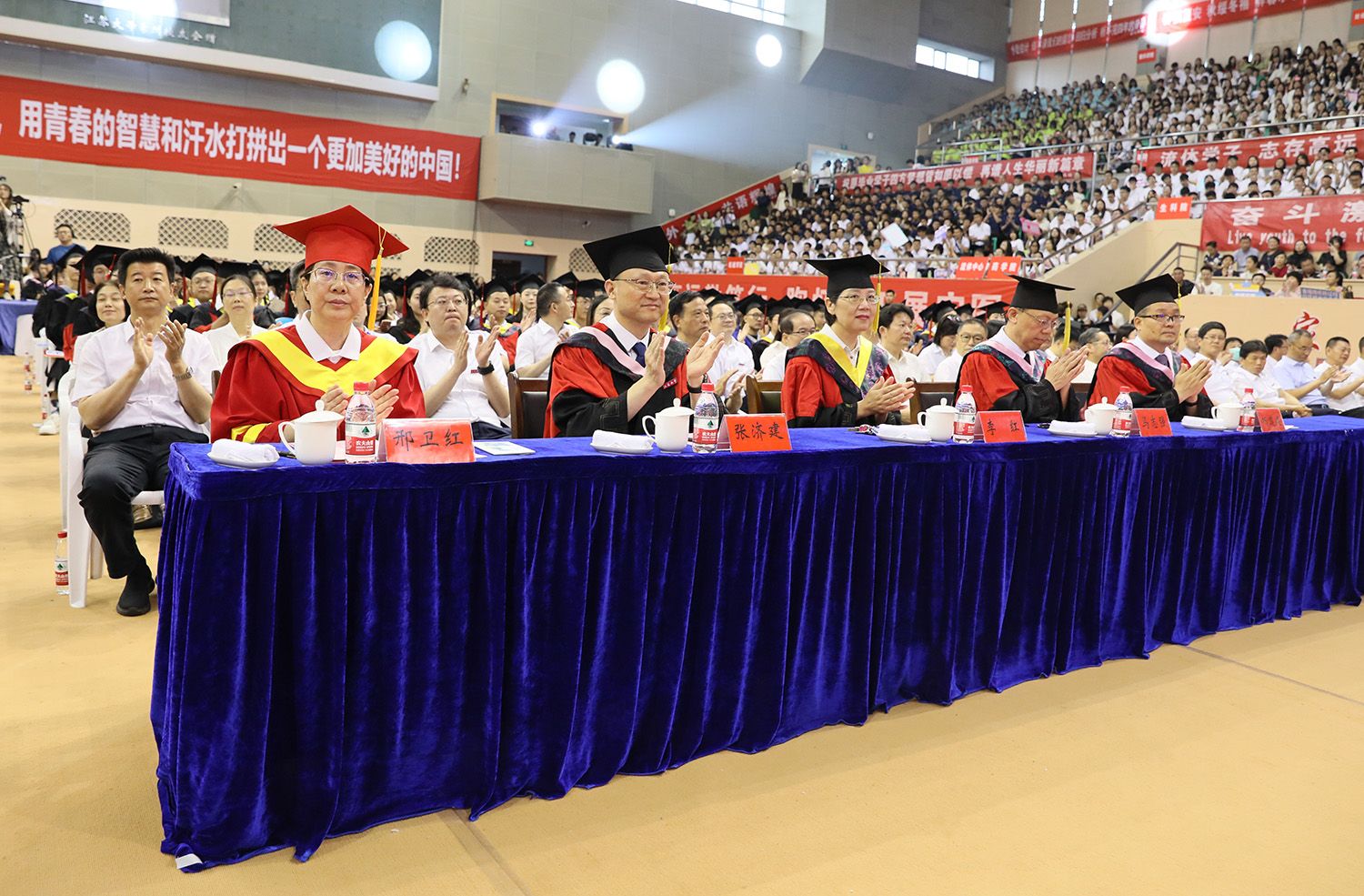 校长邢卫红发表题为《经风历雨 奔赴山海》的讲话。她代表学校向全体毕业生致以热烈的祝贺。邢卫红说,2023届毕业生是特殊的一届毕业生,经历了3年多新冠疫情的考验,铸就了包容坚毅的品格气质,体现了江大青年的责任担当,取得一个又一个骄人的成果。邢卫红说,矢志奋斗、砥砺前行的精神品格已然成为2023届毕业生的共同坚守,相信优秀的同学们终将造就更加优秀的江大。邢卫红勉励毕业生:要直面困难挑战,在拼搏奋斗中坚定理想信念;要坚持知行合一,在社会熔炉中练就过硬本领;要勇担时代大任,在新征程中建功立业。邢卫红希望毕业生在强国复兴伟大征程中续写江大故事、贡献江大力量、彰显江大影响,并祝愿大家在奔赴人生下一场“星辰大海”的路上,所见皆美好,所得皆所愿。
