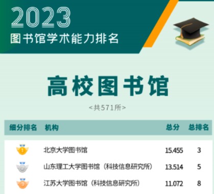 6月19日,图书馆学术评价课题组联合新文科专委会正式发布“2023图书馆学术能力排名”。本次共统计图书情报类机构782所,上榜机构为234所(前30%),sunbet申搏官方网站图书馆表现优异,位列高校系统第三名。