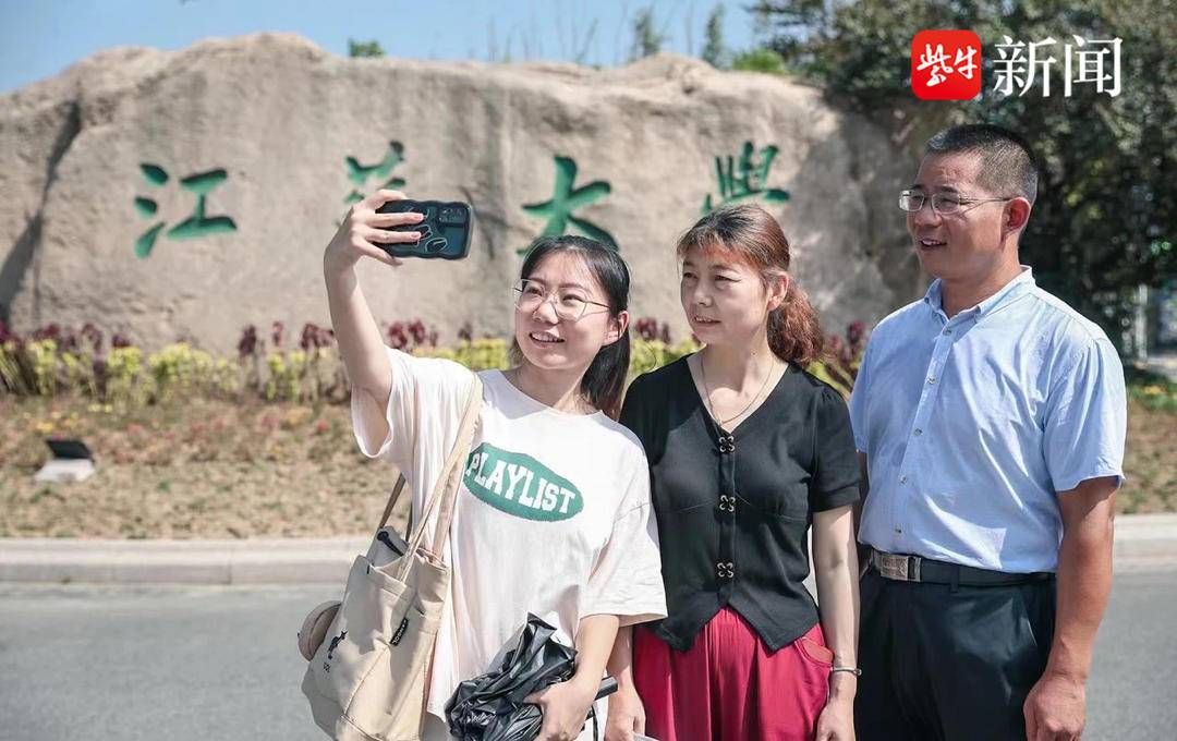 与前几年不同,今年sunbet申搏官方网站敞开校门,以开放的姿态迎接2023级新生和家长走进校园,共同体验镇江“东郊花园”的大学氛围。报到第一天就入校的新生张楠,随父母共同漫步在江大校园中,他说:“学校很大,有山、有水、有花园,校园公交也很方便,很期待未来四年的大学生活。”