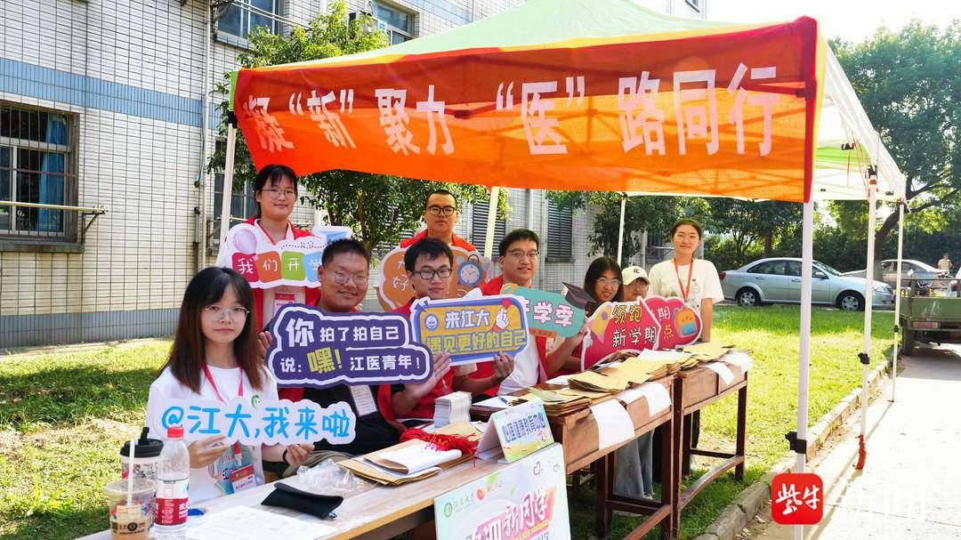 汽车学院的新生Flag袋、立志尺,管理学院的报到签名墙,法学院的集章抽奖,外国语学院的文创大礼包,医学院的定制许愿树,艺术学院的“手绘江大”活动……各学院创意繁多、惊喜连连,给新同学们带来了满满的仪式感和幸福感。