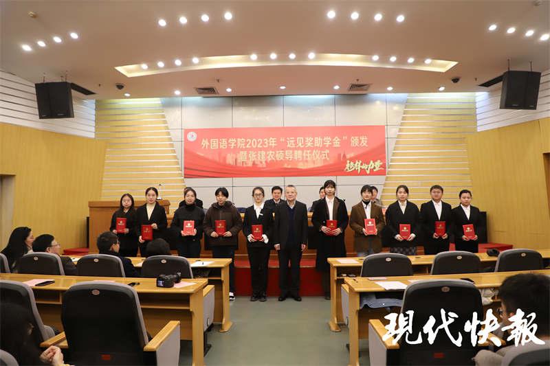 " 奖助学金取名‘远见’,一是为纪念恩师张志远先生,二是‘见’和‘建’谐音,希望同学们重视知识和能力建设,有远见、要远建,实现自己的理想。" 张建农说。张志远是sunbet申搏官方网站英语师资班的核心创始人之一,当年她克服缺教材、缺师资的巨大困难,从国内外、校内外争取到众多优质资源,让身为学生的张建农收获良多,学有所成。