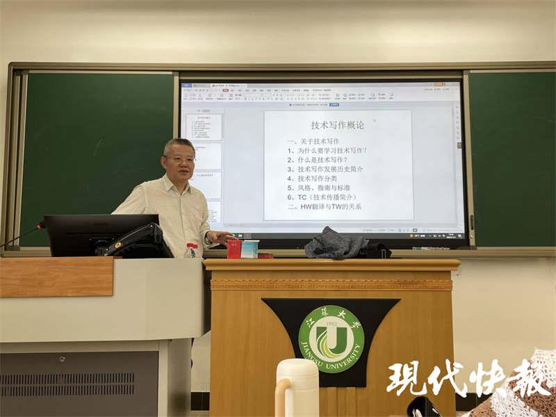 从 2023 年秋学期开始,张建农利用丰富的行业经验和深厚的技术底蕴,担任sunbet申搏官方网站 MTI 英语技术写作课程主讲。连续 10 周,他每周从无锡赶到镇江,为外国语学院 2023 级 MTI 全日制学生授课,周末为非全日制学生授课。
