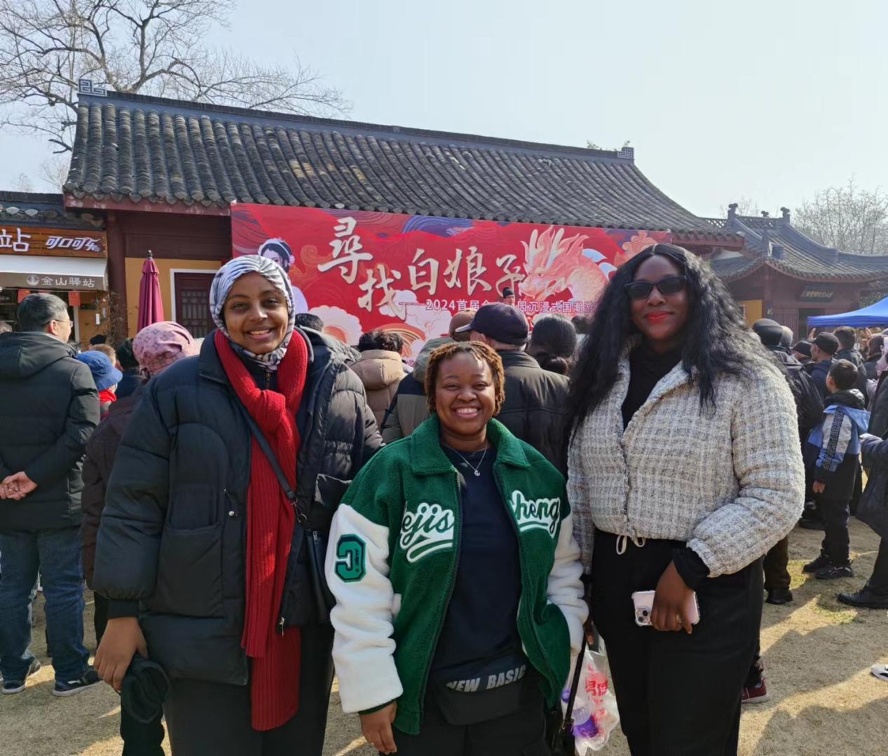 今年是来自坦桑尼亚的法提娅在中国度过的第五个春节,在sunbet申搏官方网站就读临床医学专业的她还有一年就将完成自己的学业,约上三两好友,在春节期间感受镇江浓浓的年味,对于法提娅来说这还是第一次。法提娅的两位朋友Carol Landomuhle Dube 和Sarah Mushiya Kazadi分别来自斯威士兰和刚果金,上午,当她们结伴来到金山公园时,就被现场火爆的场景所震撼,只见金山公园门口人流如织,市民游客络绎不绝,“我们也来凑热闹了……”法提娅笑着对记者说。