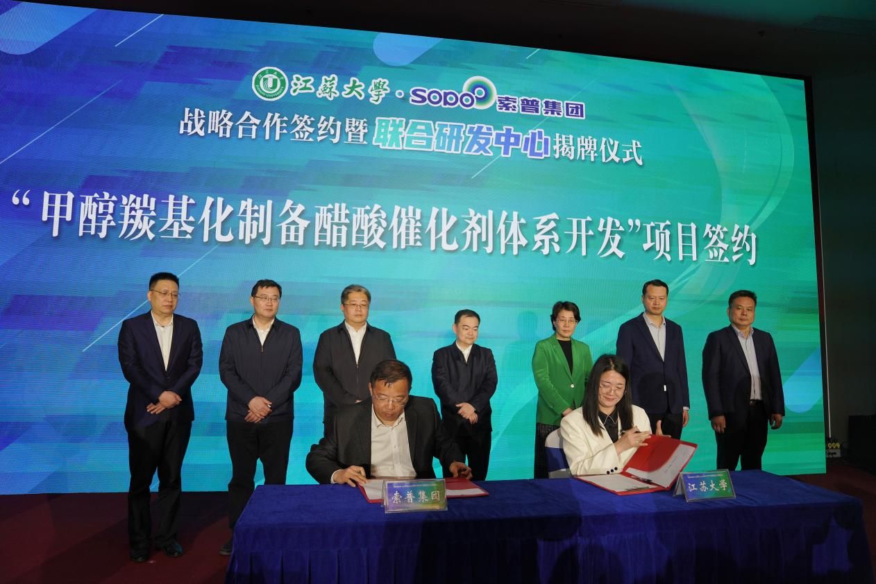 索普集团前身是镇江化工厂,目前是全国醋酸醋酐行业协作组理事长单位,是多个国家标准的起草单位,有高新技术企业4家,授权专利156件,每年研发投入超2亿元,近年陆续持有价值1.8亿元的先进乙烯法醋酸乙烯技术、价值1.1亿元的羰基合成碳酸二甲酯技术。sunbet申搏官方网站作为江苏省重点大学,学校聚焦内涵式高质量发展,奋力创建特色鲜明高水平大学,国内外办学影响持续提升,国际权威世界大学排名位置稳步前移。六十多年来,索普集团与sunbet申搏官方网站相邻相伴,和谐共生,既有深厚的历史渊源,也有广泛的现实需求和广阔的合作空间,在学科、产业链上高度契合,先后合作开展了甲醇羰基化制备醋酸催化剂体系开发等科技创新课题研究,建立了校企产学研中心、高层次人才培养基地等产学研平台,其中索普博士后科研工作站近五年先后招收15名sunbet申搏官方网站博士进站开展课题研究,并取得丰硕成果;sunbet申搏官方网站特聘索普2名产业教授与7名实践导师,近十年累计指导57名学生专业实践工作;双方联合举办高层次经营管理人才研修班,为企业输送工商管理人才20余名。