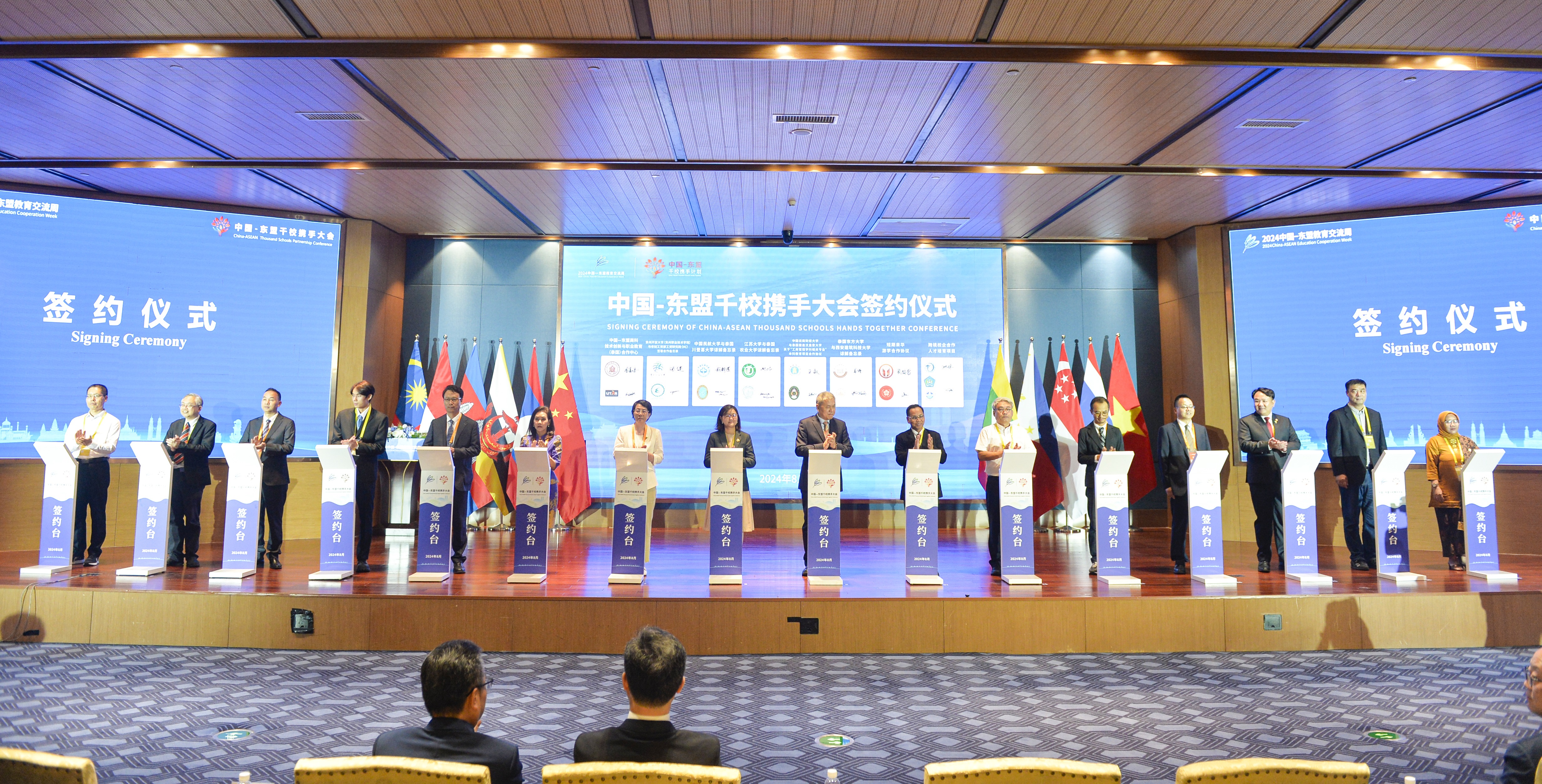 交流周期间,2024中国—东盟教育交流周“中国—东盟千校携手大会”于8月21日举行,sunbet申搏官方网站校长邢卫红出席大会并参加16组“中国—东盟千校携手计划”项目学校代表签约仪式。