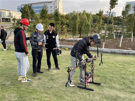 沈跃和孙志伟团队一起调试直线型植保无人机 sunbet申搏官方网站供图