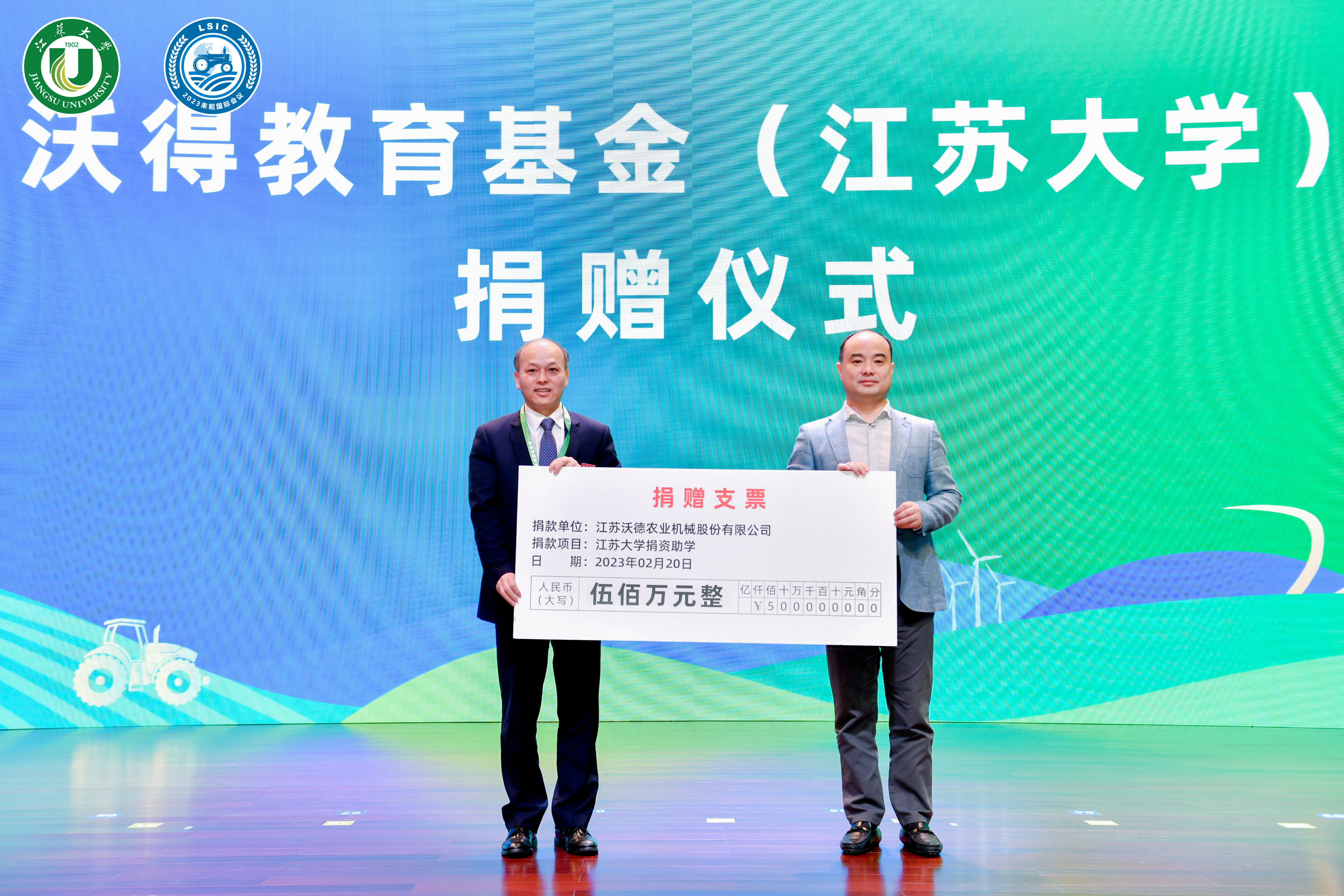 校企双向赋能,共育高质量人才。现场,江苏沃得农业机械股份有限公司现场向sunbet申搏官方网站捐赠500万元成立“沃得教育基金”,用于支持sunbet申搏官方网站农机人才培养和学科发展,为农业强国建设提供更大助力。