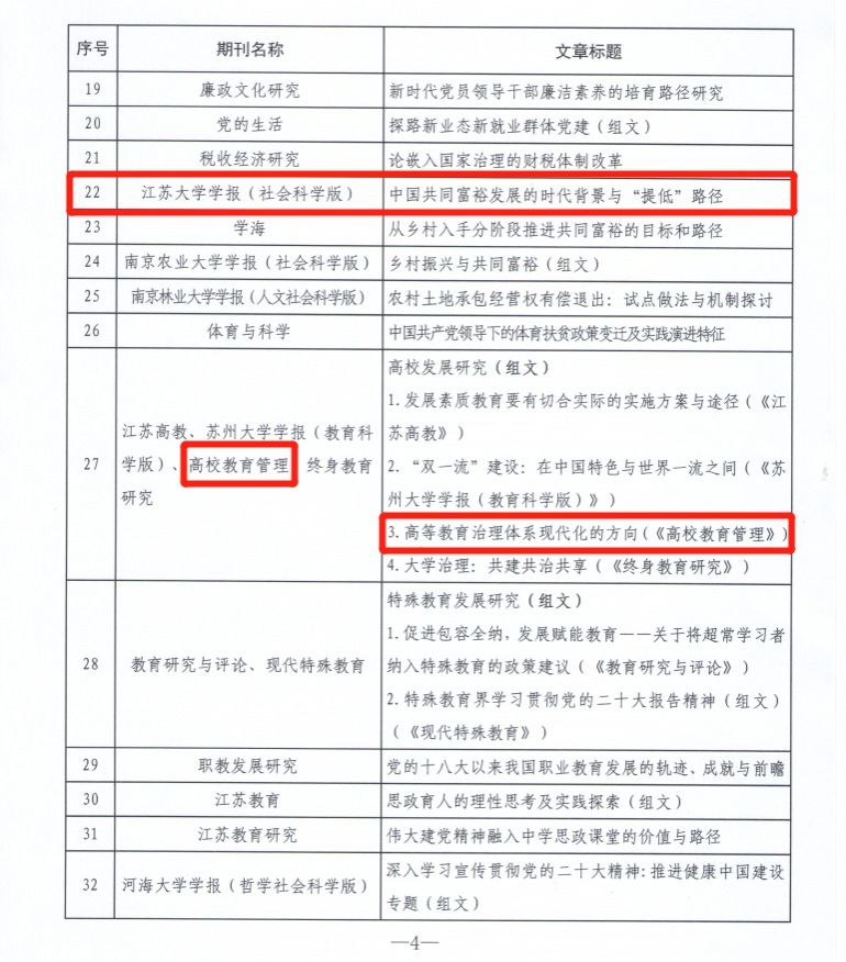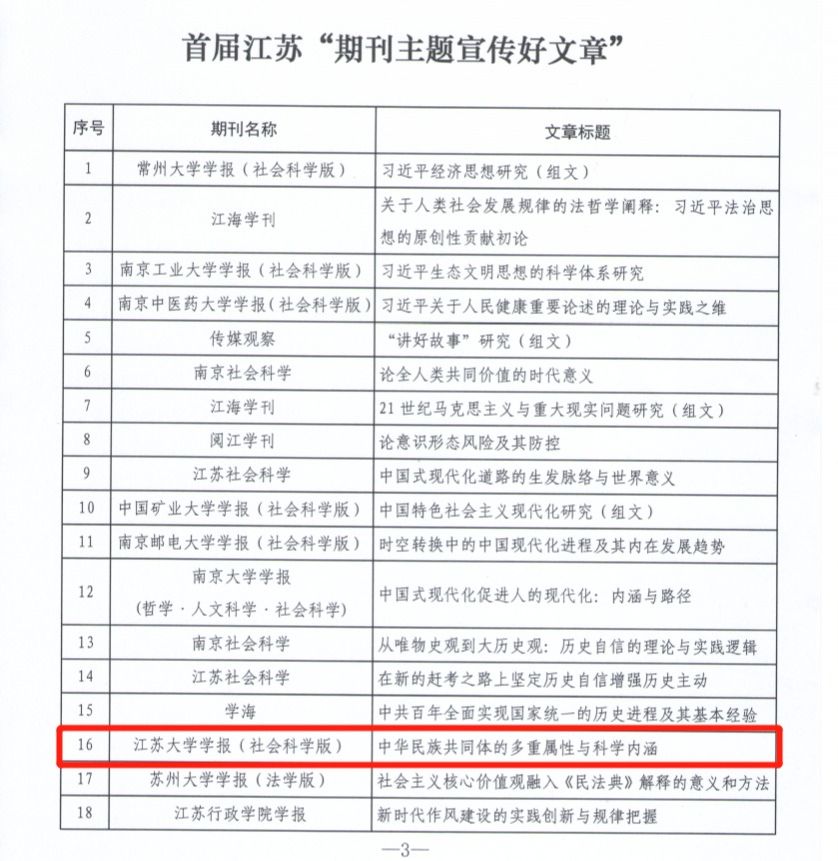 近日,江苏省新闻出版局主办、省期刊协会承办首届江苏“期刊主题宣传好文章”推荐活动,47篇(组)文章入选首届江苏“期刊主题宣传好文章”。其中,《sunbet申搏官方网站学报(社会科学版)》刊发的《中华民族共同体的多重属性与科学内涵》《中国共同富裕发展的时代背景与“提低”路径》,《高校教育管理》刊发的《高等教育治理体系现代化的方向》等三篇文章成功入选。