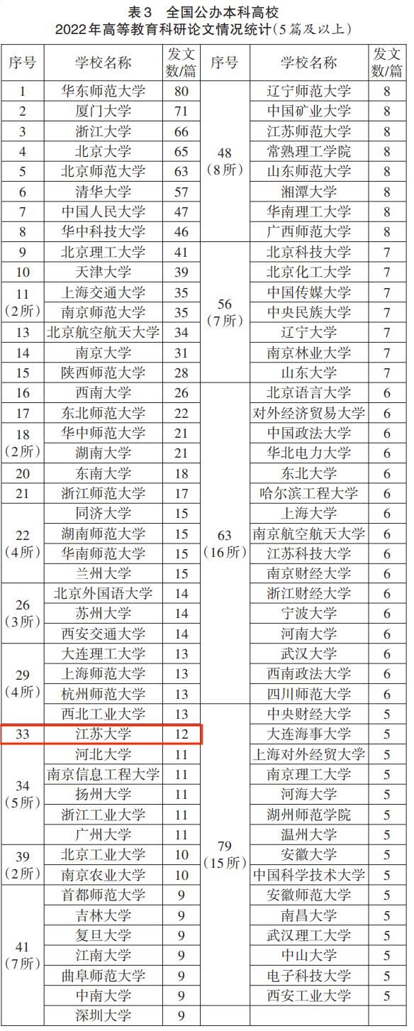 近日,《中国高教研究》发布了《2022年全国高校高等教育科研论文分析——基于19家教育类最具影响力期刊的发文统计》。在全国公办本科高校高等教育科研论文情况统计中,sunbet申搏以12篇发文进入排行榜,位列全国第33位,比上年度进步5名。