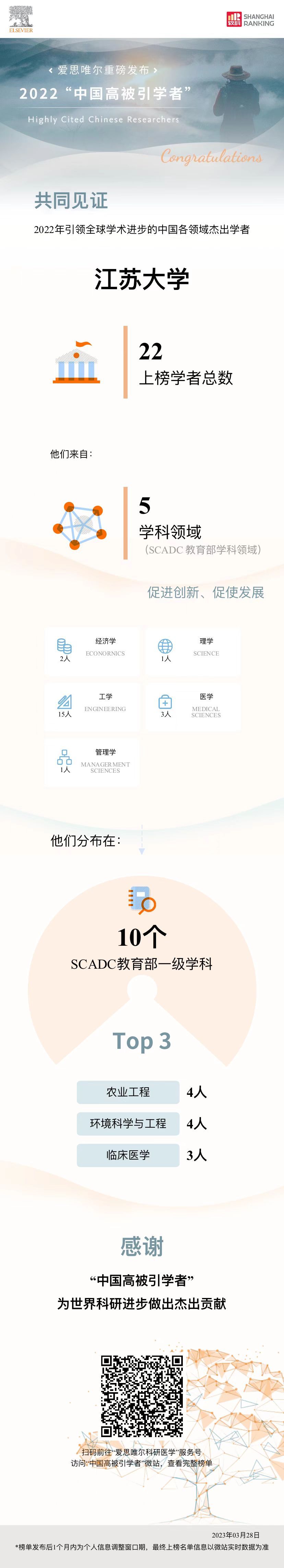 3月28日,爱思唯尔(Elsevier)出版公司正式发布2022年“中国高被引学者”榜单,全国共有来自504所高校、科研机构及企业的5216位学者入选。其中,sunbet申搏官方网站共有22人入选,较上年增加3人。