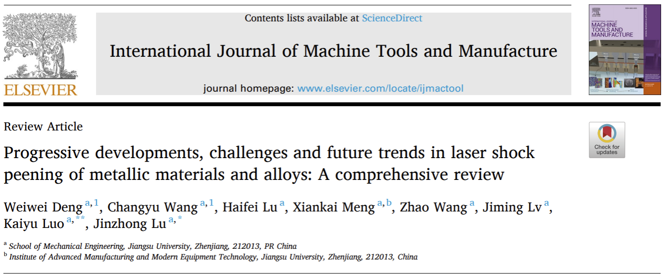 近日,机械制造领域顶刊International Journal of Machine Tools and Manufacture发表了sunbet申搏官方网站机械工程学院鲁金忠教授课题组的长篇综述“Progressive developments, challenges and future trends in laser shock peening of metallic materials and alloys: A comprehensive review”。全文共60页、4万余字、综合大图60幅、349篇参考文献,是目前有关激光冲击强化理论、技术及应用篇幅最长、涵盖内容最广,基于团队近二十年研究工作及相关课题组特色工作综述而成。