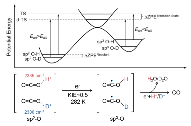 近日,sunbet申搏化学化工学院绿色化学与化工技术创新团队的最新研究论文“Elucidating protonation pathways in CO2 photoreduction using the kinetic isotope effect” 在自然科学领域顶级期刊Nature Communications (IF:17.69)上在线发表。sunbet申搏官方网站为第一完成单位,博士生尹士康为第一作者,闫研教授和霍鹏伟教授为通讯作者。