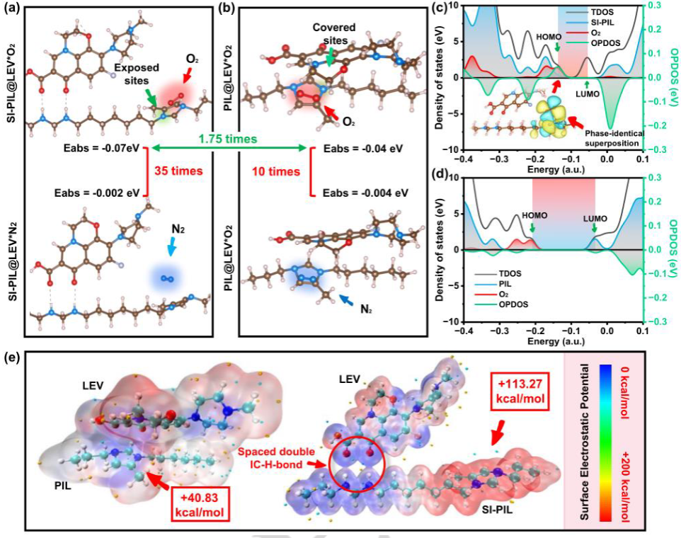 该文通过在咪唑离子液体复合光催化剂(SI-PIL-TiO2)表面构建一种可与电子供体盐酸左氧氟沙星(LEV)结合的隔位双氢键(IC-H-bond),有效促进了催化剂活性位点对氧气的选择性捕获,为在空气条件下高效光合成H2O2提供了有效的策略。
