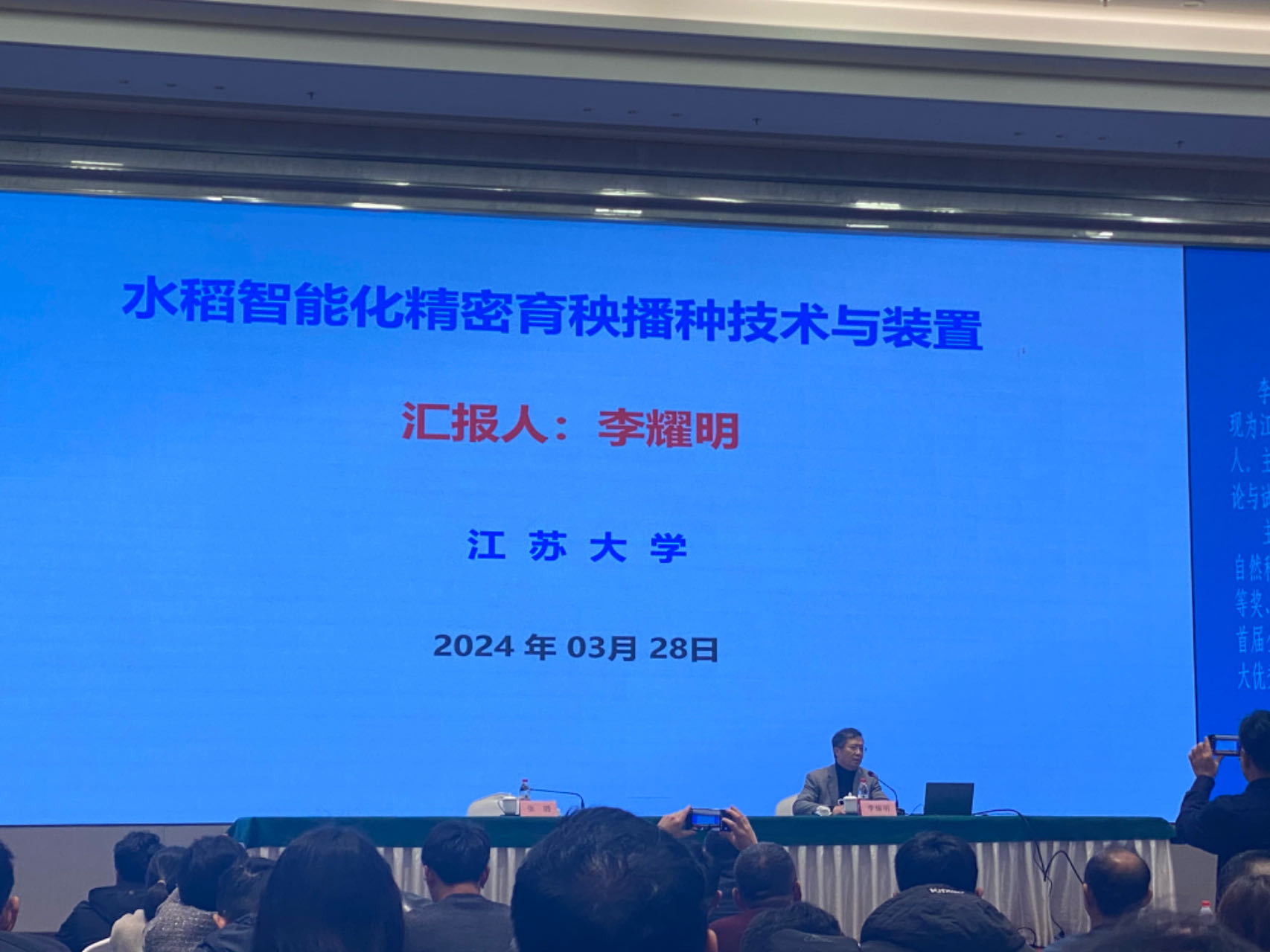 现场会期间,李耀明应邀作“水稻智能化精密育秧播种技术与装置”技术报告,从我国水稻育秧技术需求、当前育秧播种装备、整盘气吸式工作原理及装备等多个方面,阐述了育秧播种装备面临的问题及装备应用前景。