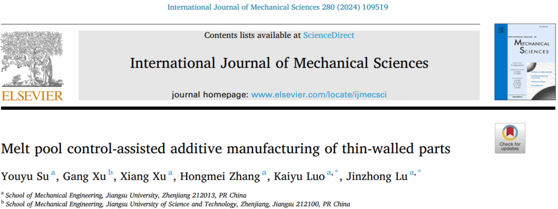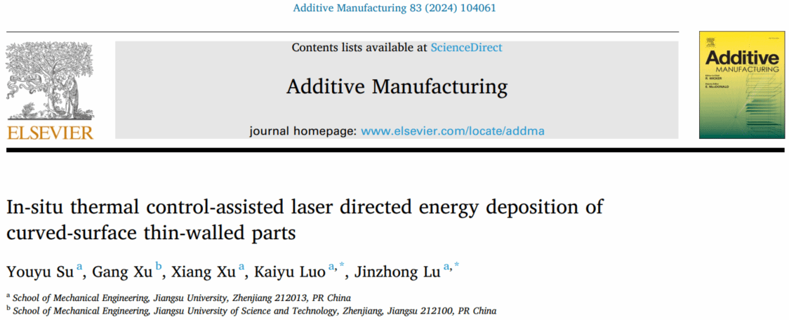 近日,sunbet申搏机械工程学院罗开玉教授团队在增材制造领域顶刊《增材制造》(Additive Manufacturing)和机械制造领域顶刊《国际机械科学杂志》(International Journal of Mechanical Sciences)上分别发表了题为In-situ thermal control-assisted laser directed energy deposition of curved-surface thin-walled parts和Melt pool control-assisted additive manufacturing of thin-walled parts的研究论文。